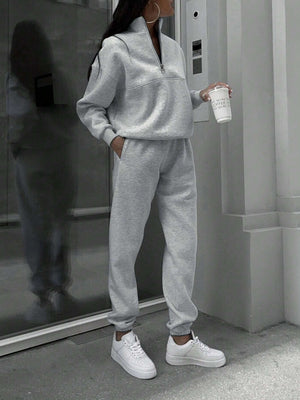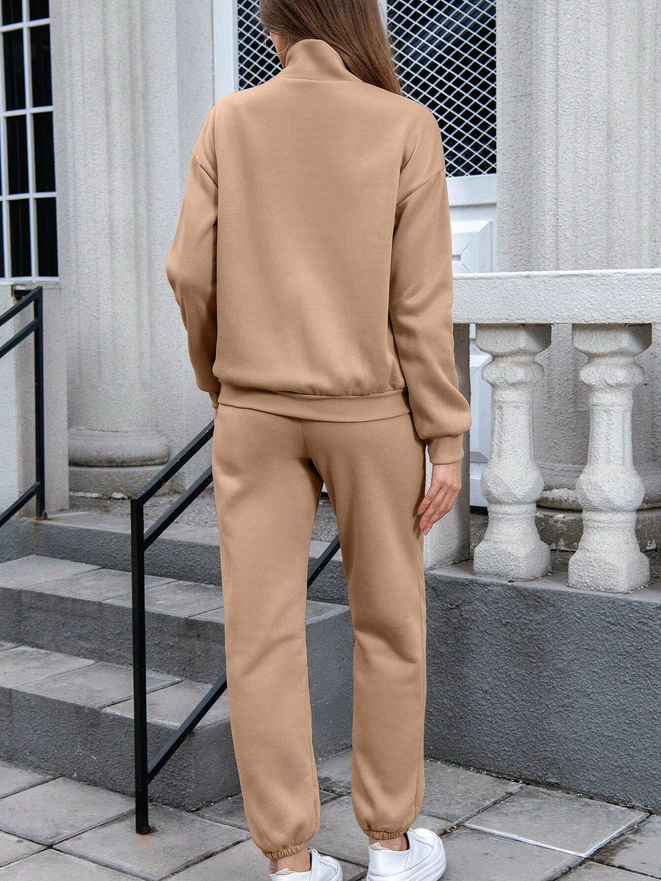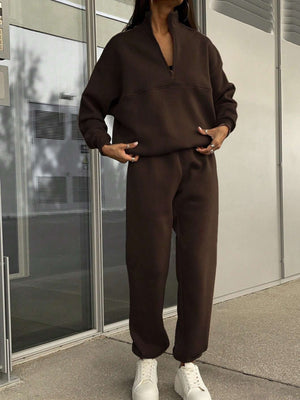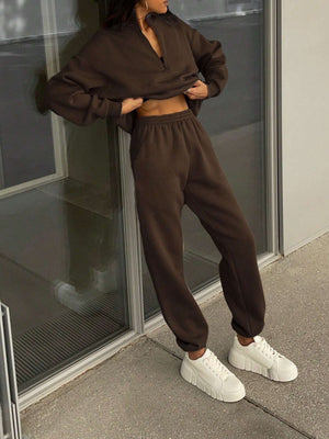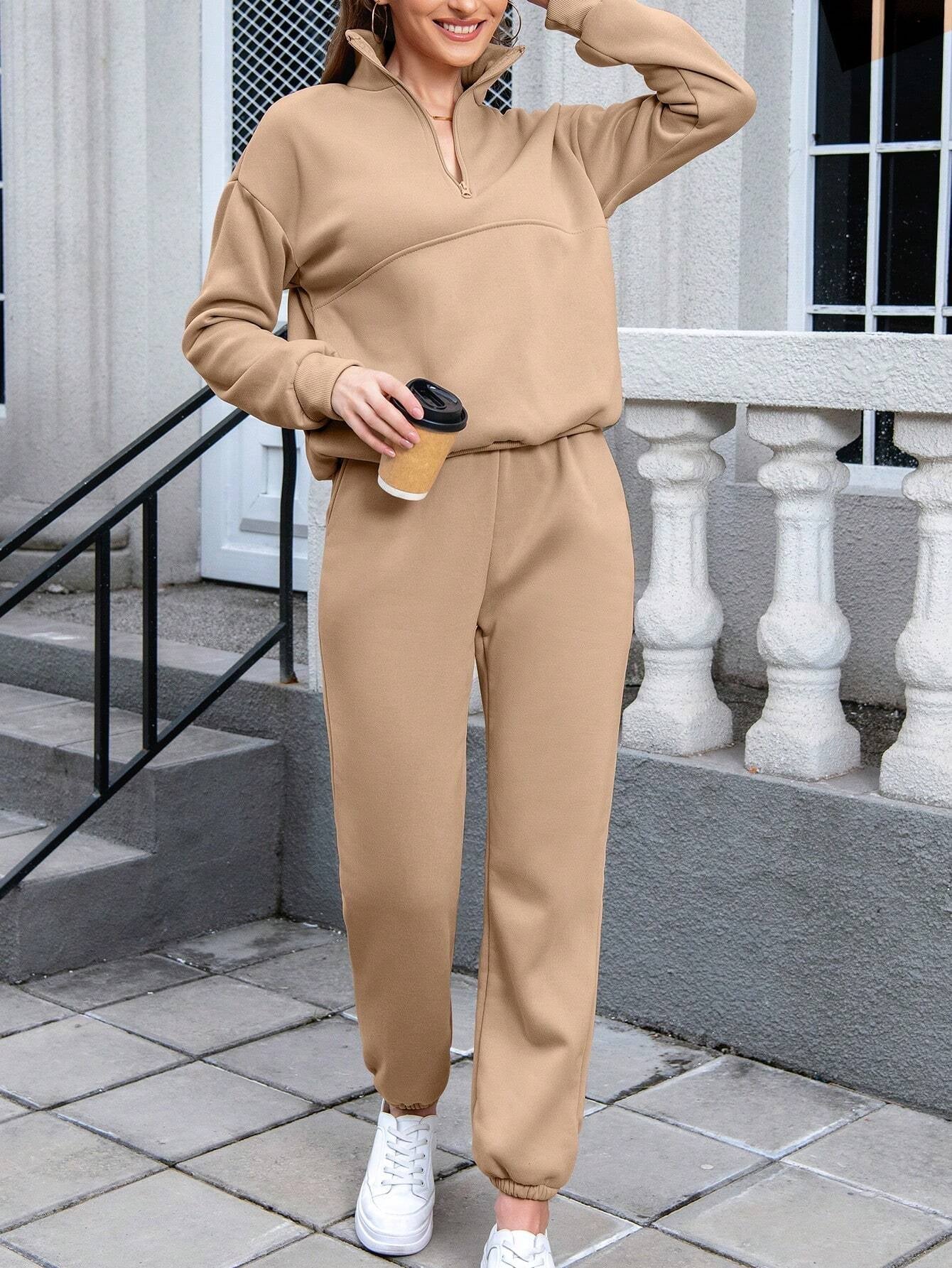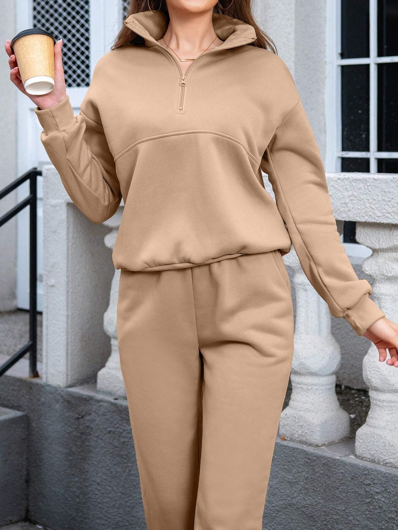 Elevate your fall wardrobe with this versatile solid color casual 2-piece set featuring a comfortable sweatshirt and matching sweatpants. The drop shoulder design and practical pockets make this coordinated set perfect for everyday comfort and style.