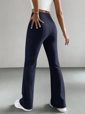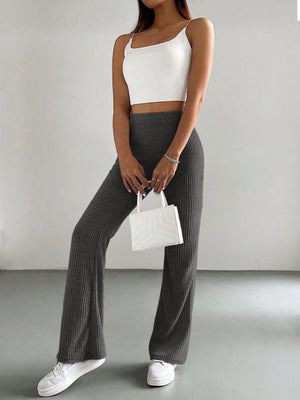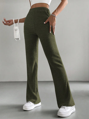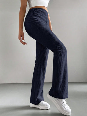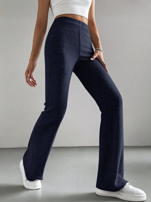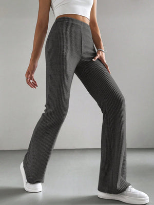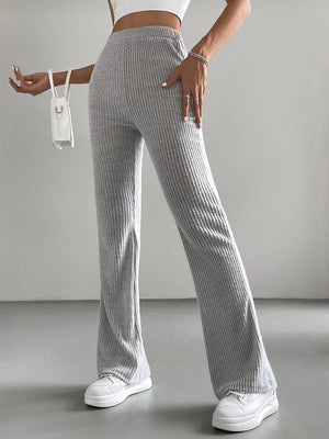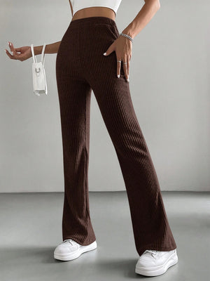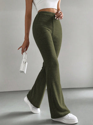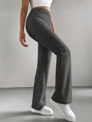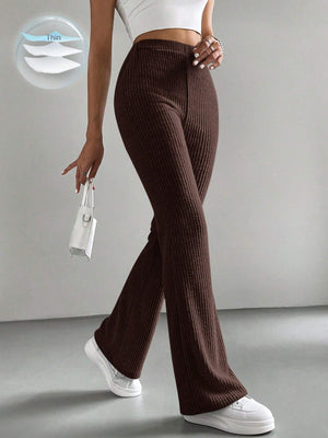 Step into comfort and style with these Solid Color High Waisted Pants! Crafted from cozy rib-knit fabric, they hug your waist with an easy elastic band and flare out for a fun, casual vibe. Perfect for lounging or stepping out, their long, regular fit keeps you comfy while showing off your playful side. Elevate your everyday look with these effortlessly cool pants!