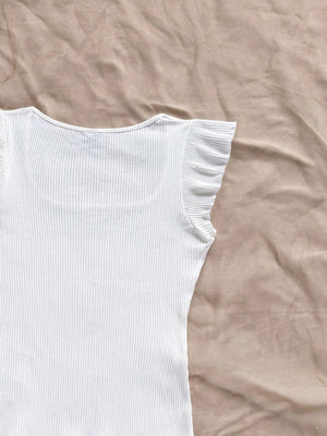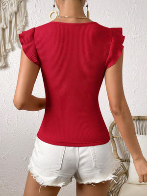 Solid Color Ribbed Knit Cap Sleeve Tee