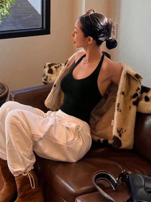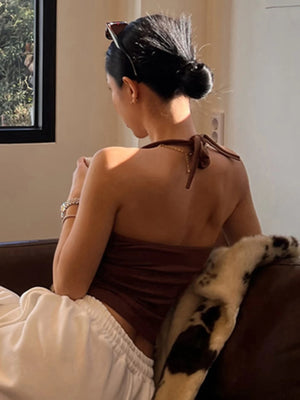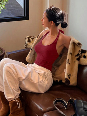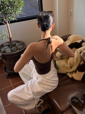 Get ready to turn heads this summer with our Solid Color Round Neck Halter Slim Fit Tank Top! This playful, backless crop top features a rib-knit texture and a flattering slim fit that hugs your curves just right. Perfect for beach days or casual outings, its halter neckline adds a flirty touch while keeping you cool and stylish all day long. Embrace the sunshine in effortless comfort and fun!