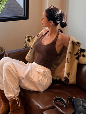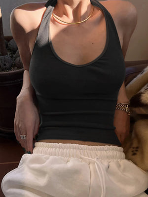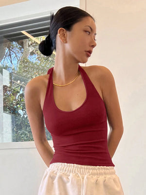 Solid Color Round Neck Halter Slim Fit Summer Top Tank Tops