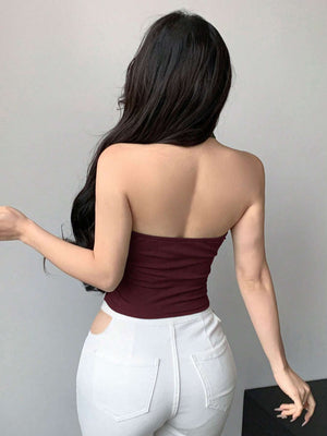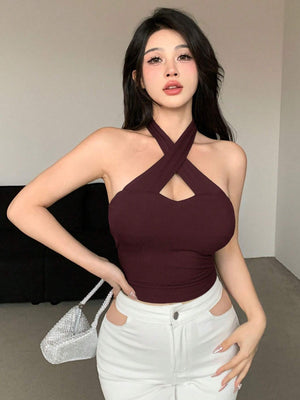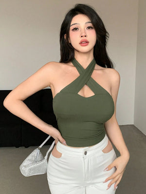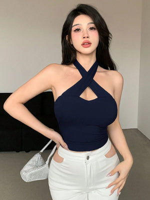 Turn heads this summer with our Solid Color Wrapped Halter Neck Slim Fit Tank Top. Featuring a playful criss-cross back, a flirty knot detail, and a sleek backless design, it’s perfect for concerts or casual outings. The slim fit hugs your silhouette, while the halter neckline adds a touch of bold charm. Stay cool and stylish all season long!