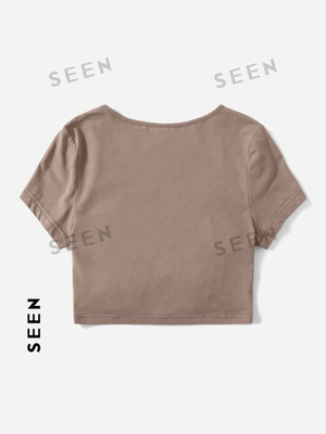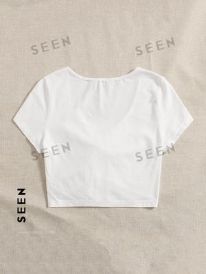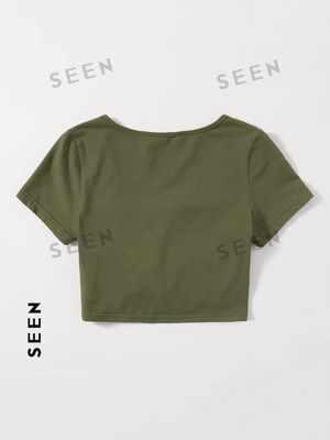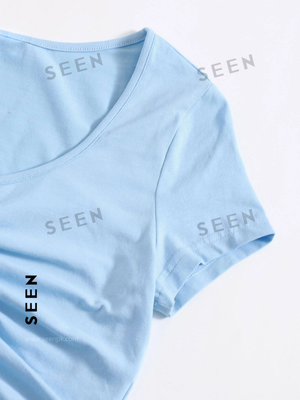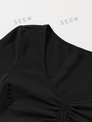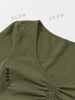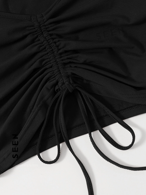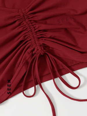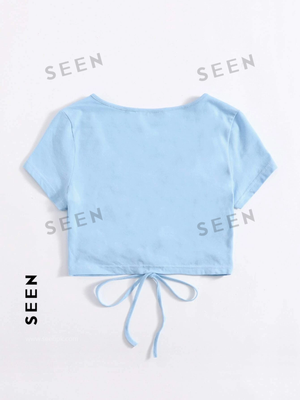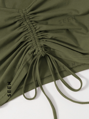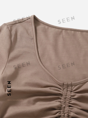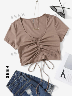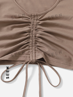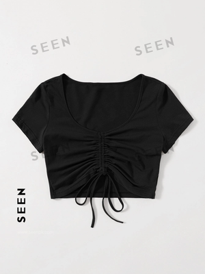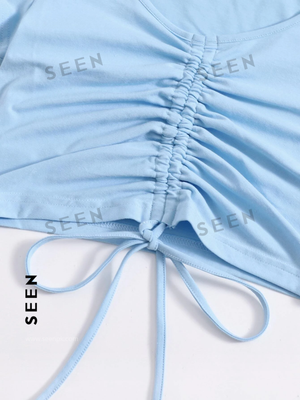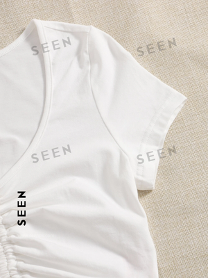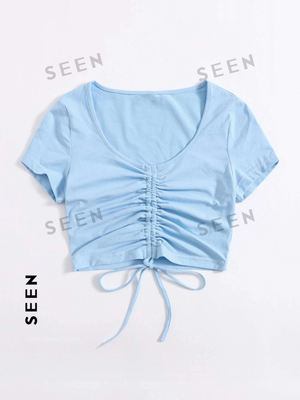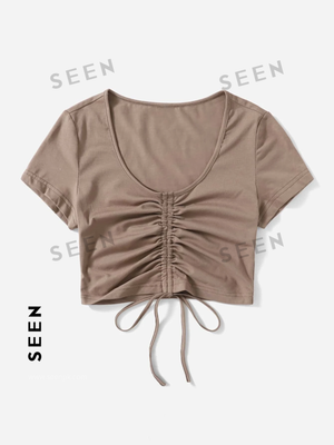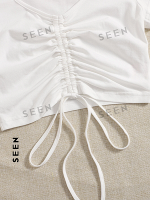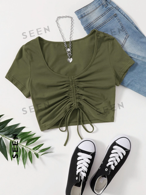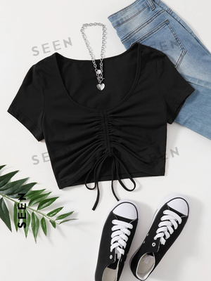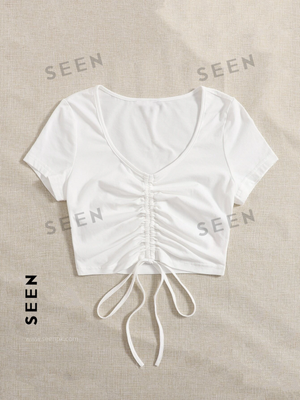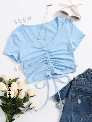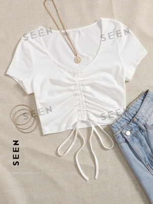 Solid Drawstring Ruched Tee