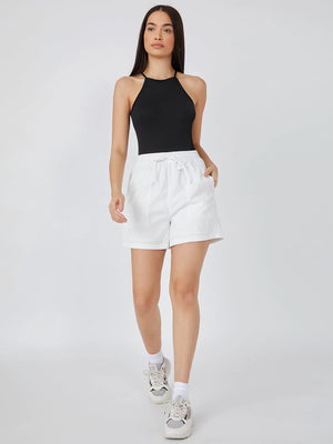 This solid halter bodysuit is your go-to for turning heads with its backless, crisscross design. Sleek and sleeveless, it hugs your curves with a slim fit that’s perfect for casual outings or fun nights out. Simple yet striking, it’s a playful way to keep your style effortlessly cool.