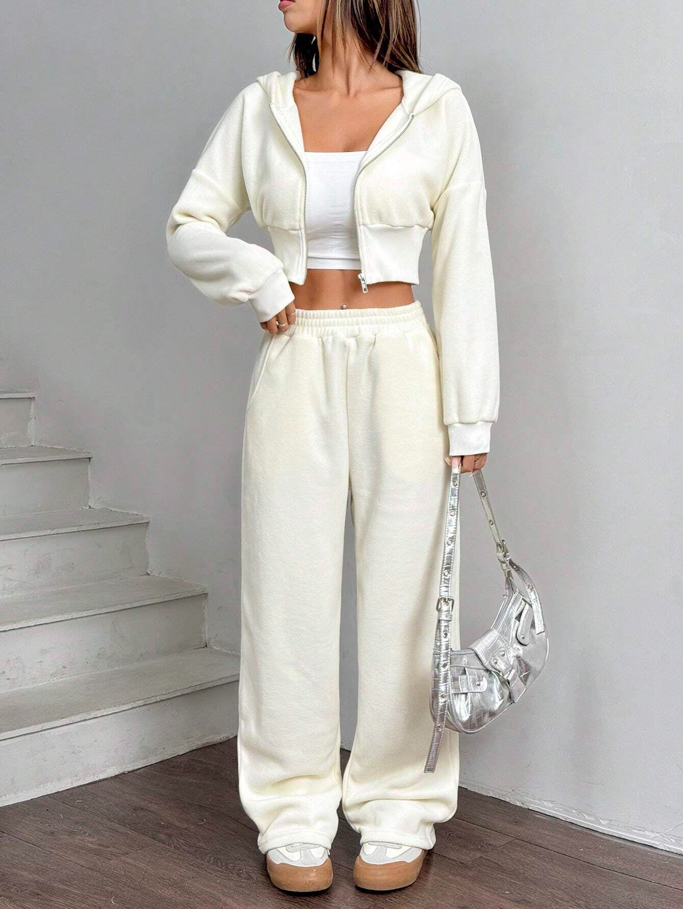 Welcome spring in ultimate style and comfort with this fashionable two-piece set that combines a trendy zip-front hooded sweatshirt with coordinating pants. Perfect for the transitional spring season, this versatile ensemble offers the perfect balance of casual chic and cozy comfort for temperatures ranging from 18-25°C (63-77°F).