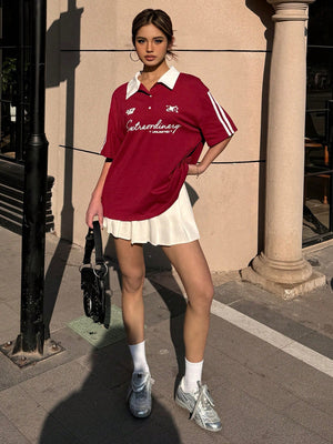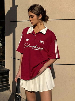 The classic polo collar with button details adds a refined touch, while the trendy drop shoulders and side stripe accents bring contemporary flair. The rich burgundy hue combined with contrast binding creates a sophisticated look that's perfect for spring and summer adventures, whether you're coordinating with your partner or rocking it solo.