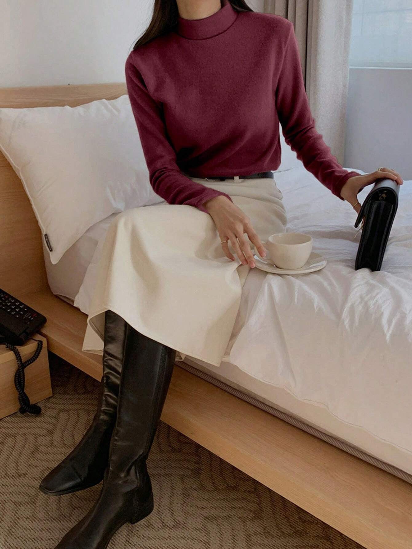 Stand Collar Solid Color T-Shirt Long Sleeve Women Tops