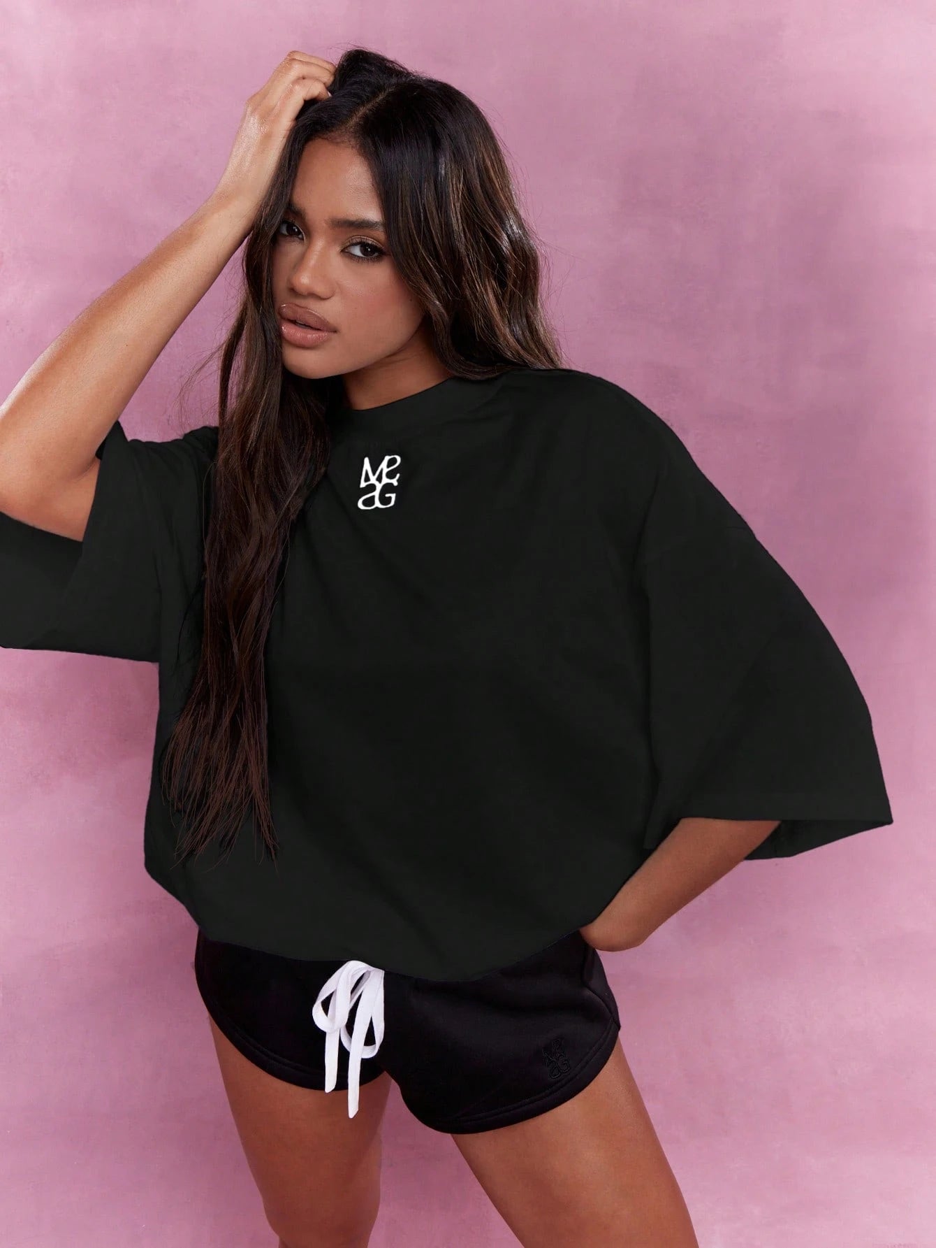 Street Embroidered Logo Crew Neck Oversized T-Shirt