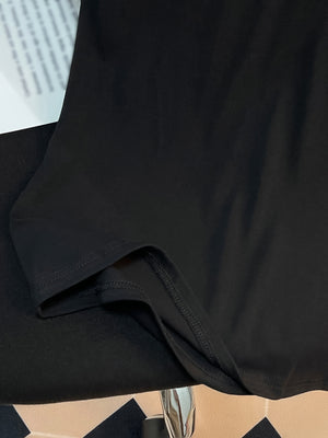Crafted from premium 95% cotton with 5% elastane for subtle stretch, this elegant V-neck t-shirt combines sophistication with everyday comfort. The breathable fabric ensures coolness during summer, while the solid black color offers versatile styling options for casual or dressed-up looks. Regular length and smooth texture create a flattering silhouette that transitions effortlessly from day to evening wear. Machine washable for convenient care.