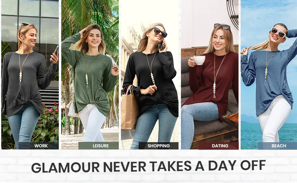 Womens Long Sleeve Tops, Casual Crewneck, Pullover Tunic Blouse, Loose Fitting T Shirts