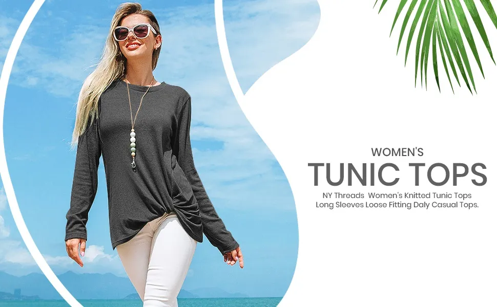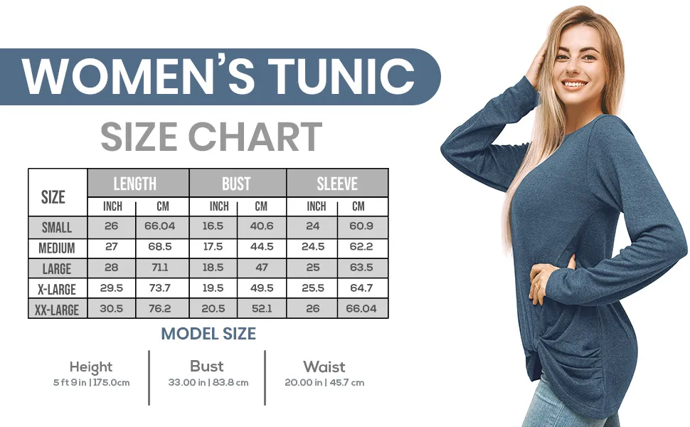 Stylish Sophistication: Embrace a trendsetting look with our mid-length tunic. The comfortably fitted design features a round-shaped neckline that gracefully complements long comfy sleeves. Adding an extra touch of elegance, a stylish side knot at the hem elevates your appearance, creating a chic and sophisticated ensemble.