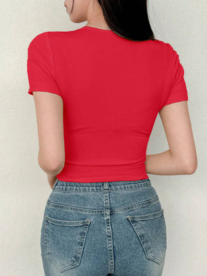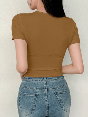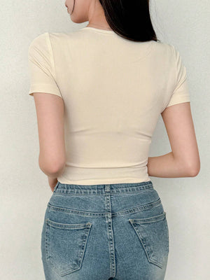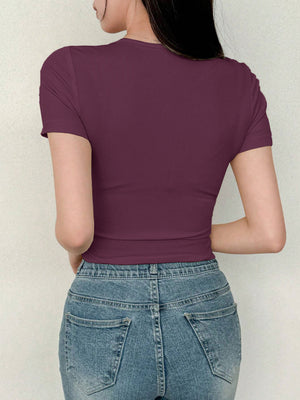 Women's Solid Color Swan Collar Short Sleeve T-Shirt